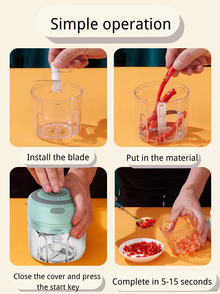 Electric garlic masher Mini garlic masher wireless meat grinder 100ml 250ml 300ml electric meat grinder wireless garlic masher household garlic cutter manual garlic cutter 500ml 900ml