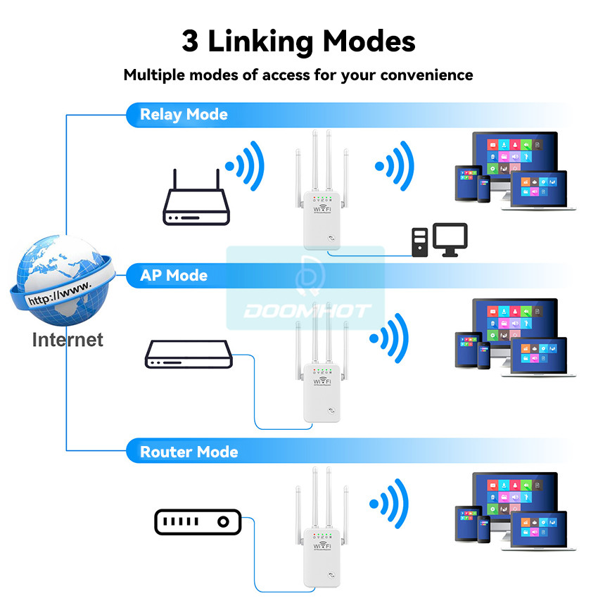 DoomHot Wireless WiFi Repeater Range Extender 802.11N/B/G Network Routers 300Mbps Ultra Range Extender Repeater Network Extender Faster Internet for AP Router Range Signal Extender EU Plug
