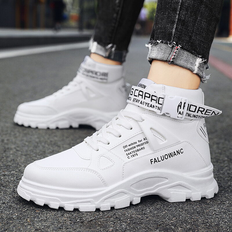 【READY STOCK】Men's high top sports shoes, outdoor casual board shoes, thick soled lace up training running shoes.