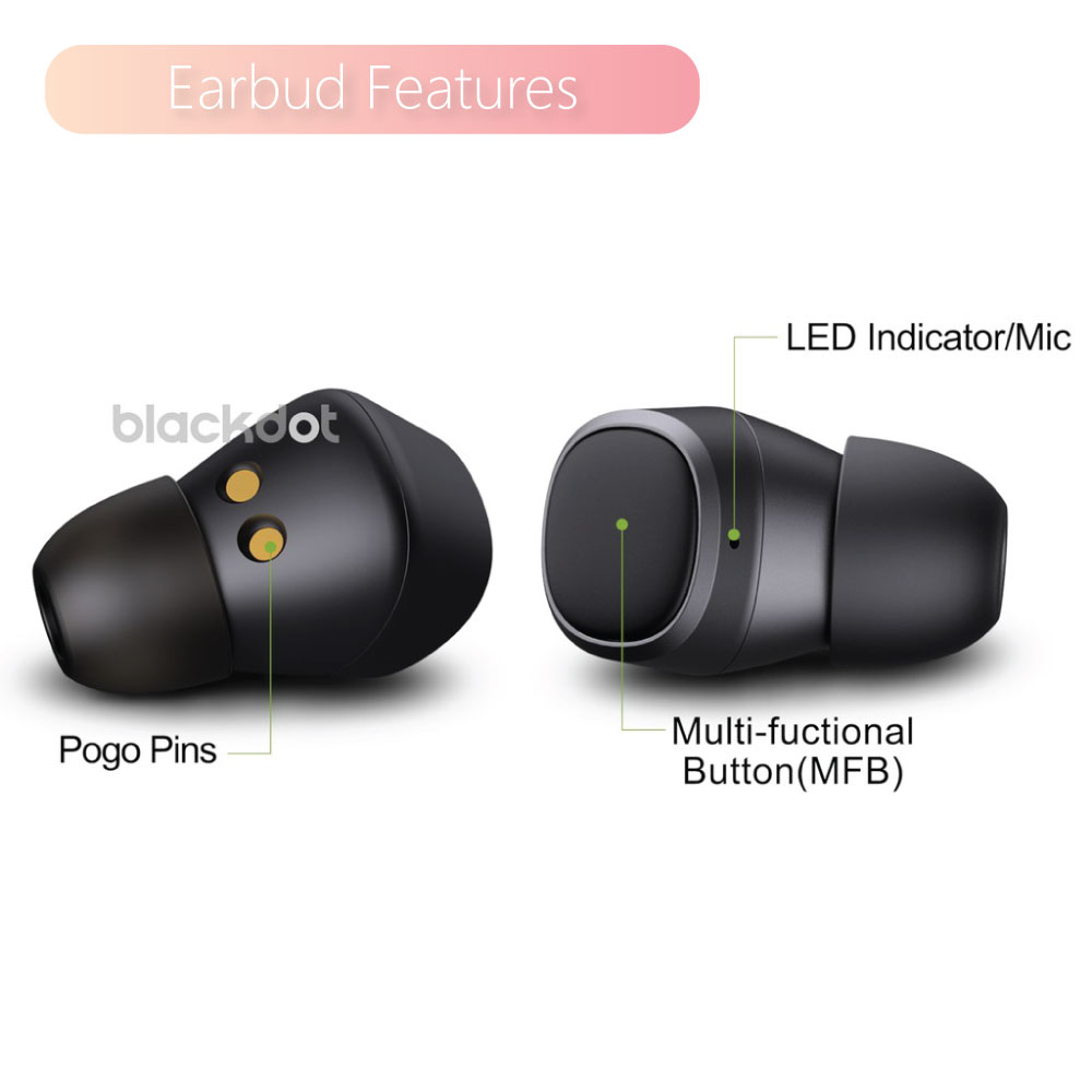 Blackdot Pro Wireless Earbuds can both answer phone calls. They can be used in dual or separate modes. Easy to share the same music/movies with friends.