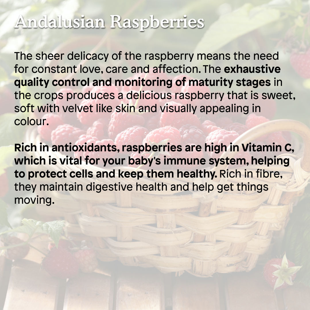 Juicy Italian peaches are balanced with plump Andalusian raspberries, bringing a pleasant sweet-sour flavour to the mix.