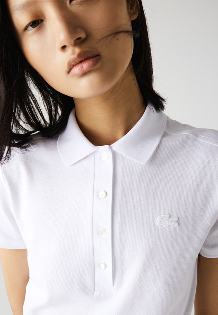 Available in an array of colours, you're spoiled for choice with this cotton polo shirt. Mother of pearl buttons, an embroidered crocodile on the chest and a thermo-glued button placket keep it feminine.